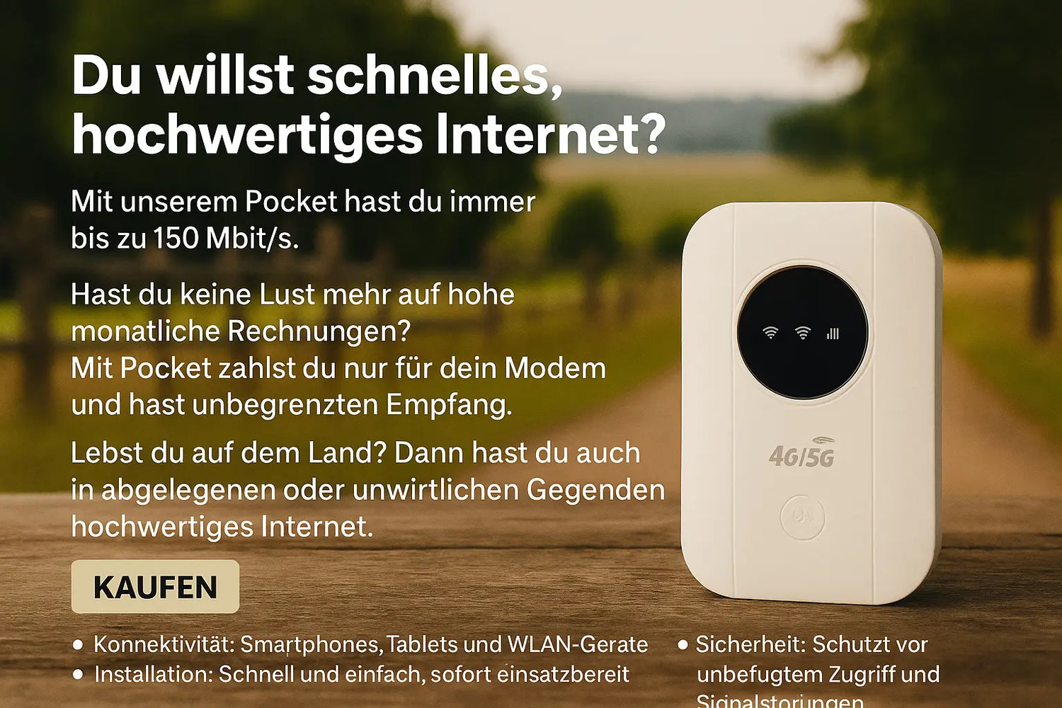 Du willst schnelles, hochwertiges Internet? Mit unserem Pocket hast du immer bis zu 150 Mbit/s.